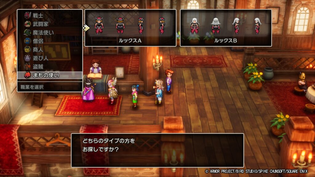 さらに新要素としては新たな職業、まもの使いが登場。戦闘面で魔物を呼び出して戦う一方、今作の重要な要素になるモンスター集めのカギを握ります。HD-2Dリメイクでは野生のモンスターをテリワンさながら仲間にすることができるんですよ。