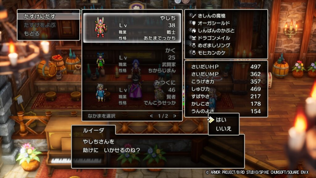 これは自分の仲間を酒場に登録して別の冒険の書へ貸し出すことができる機能のこと。ストーリークリアして育ち切ってる仲間を、レベル1のアリアハンから使うこともできるんです。まさにおたすけになる機能ですね。2週目以降の救済措置的な感じで、別の性別などもやってみたいという人は大きな時短になるでしょう。
