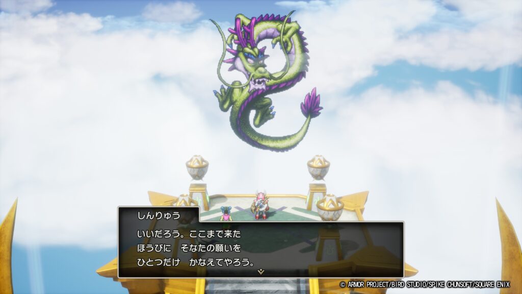 次はクリア後の要素。まずお馴染みの裏ボスとなるしんりゅうはどのリメイクでも実装しています。○○ターン以内に倒せば願い事叶えてくれるところも同じなので作戦を立てたり仲間を育成する楽しみもありますね。